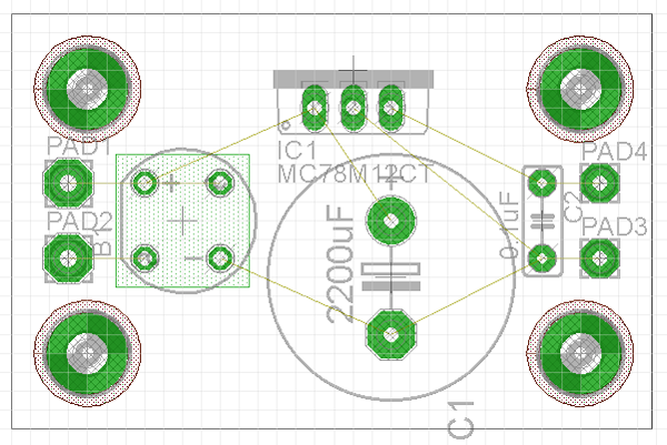 ยกตัวอย่างการออกแบบลายปริ้นแบบอัตโนมัติ เป็นวงจรจ่ายไฟคงที่ดังรูป